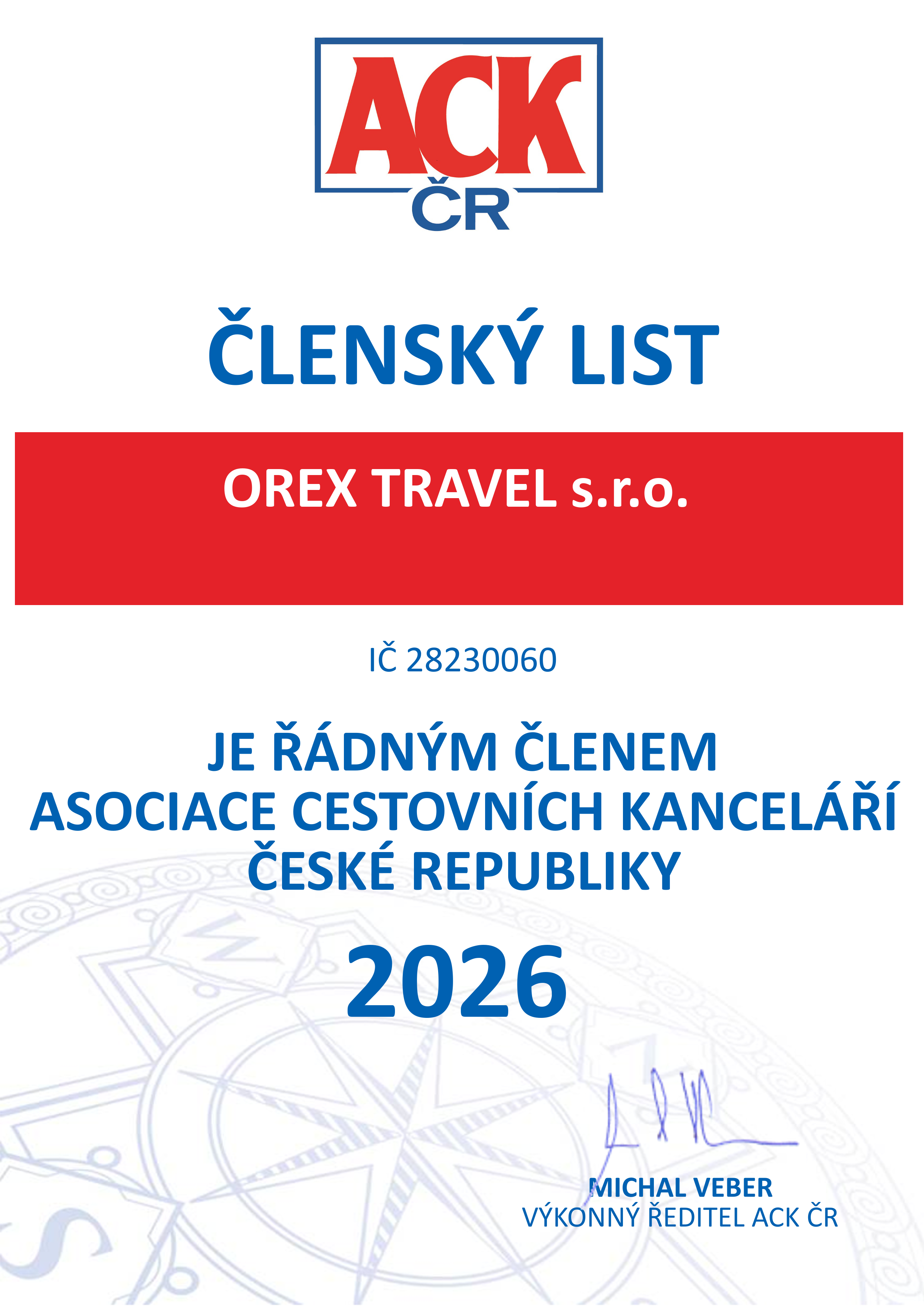 Certifikát pojištění záruky pro případ úpadku cestovní kanceláře pro období 01.01.2026 - 31.12.2026