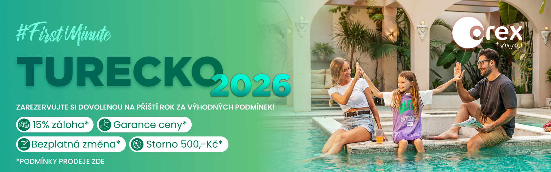 Pro zakoupené First Minute zájezdy v období 1.2.2026 – 31.3.2026 platí záloha 15% + pojištění, pokud je součástí zájezdu.